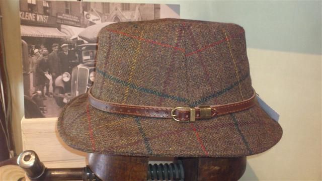 Sombrero de Donegal Tweed con cinta de cuero.